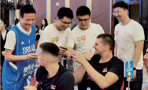 帅邦厨电高管团队在欢迎晚宴上与约基奇、 博格达诺维奇等塞尔维亚籍NBA球星互动。